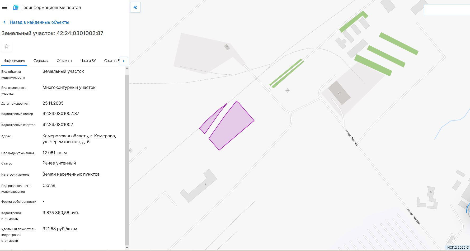 Земельный участок, пл.12051 кв.м, кадастровый №42:24:0301002:87, разрешенное использование: склад. Срок аренды 128 месяцев