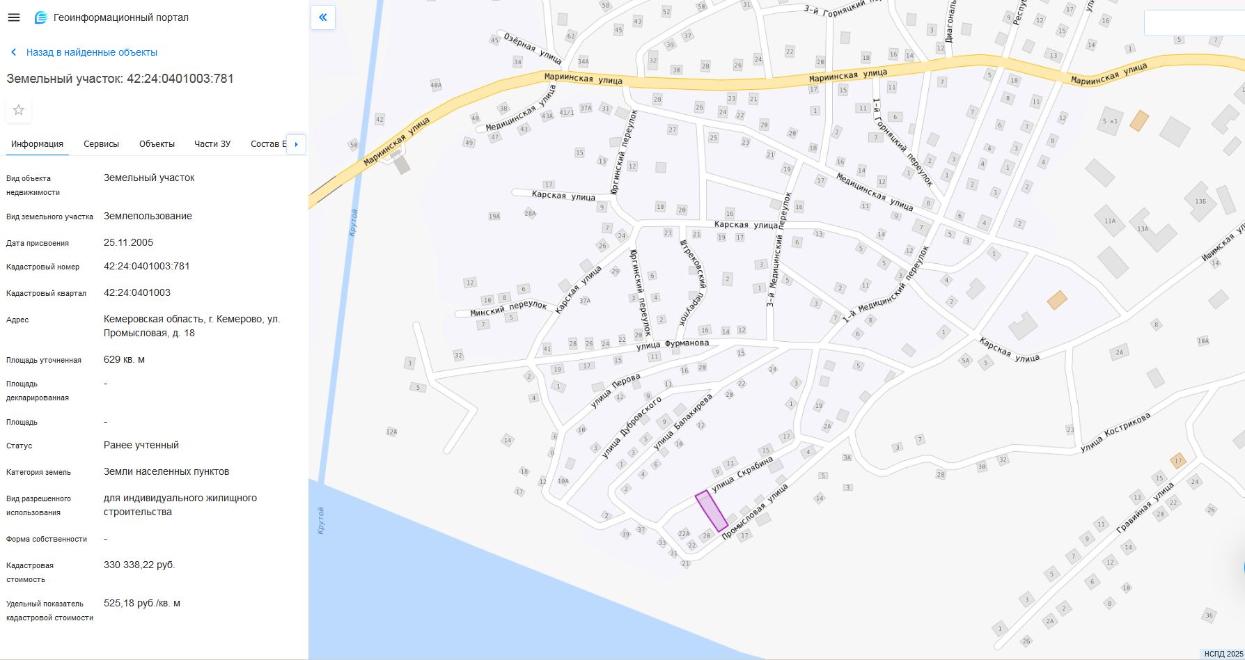 Земельный участок, пл.629 кв.м, кадастровый №42:24:0401003:781, разрешенное использование: для индивидуального жилищного строительства. Срок аренды 20 лет
