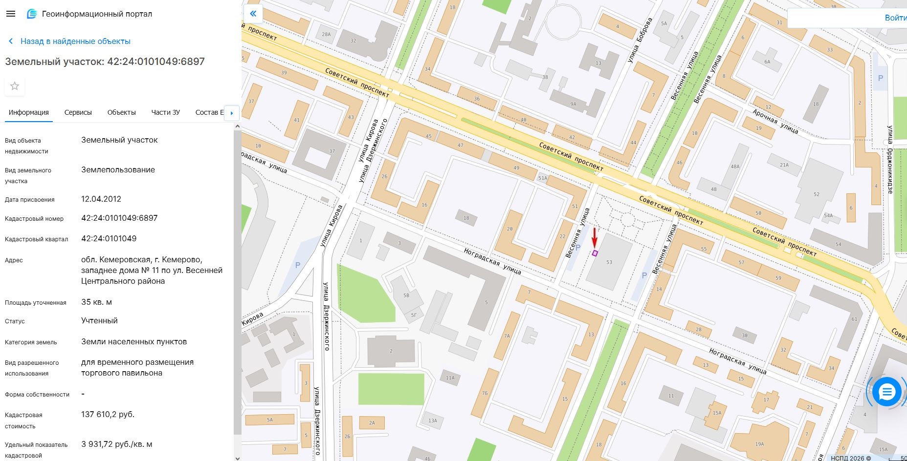 Адрес: г.Кемерово, ул.Весенняя, западнее дома №11