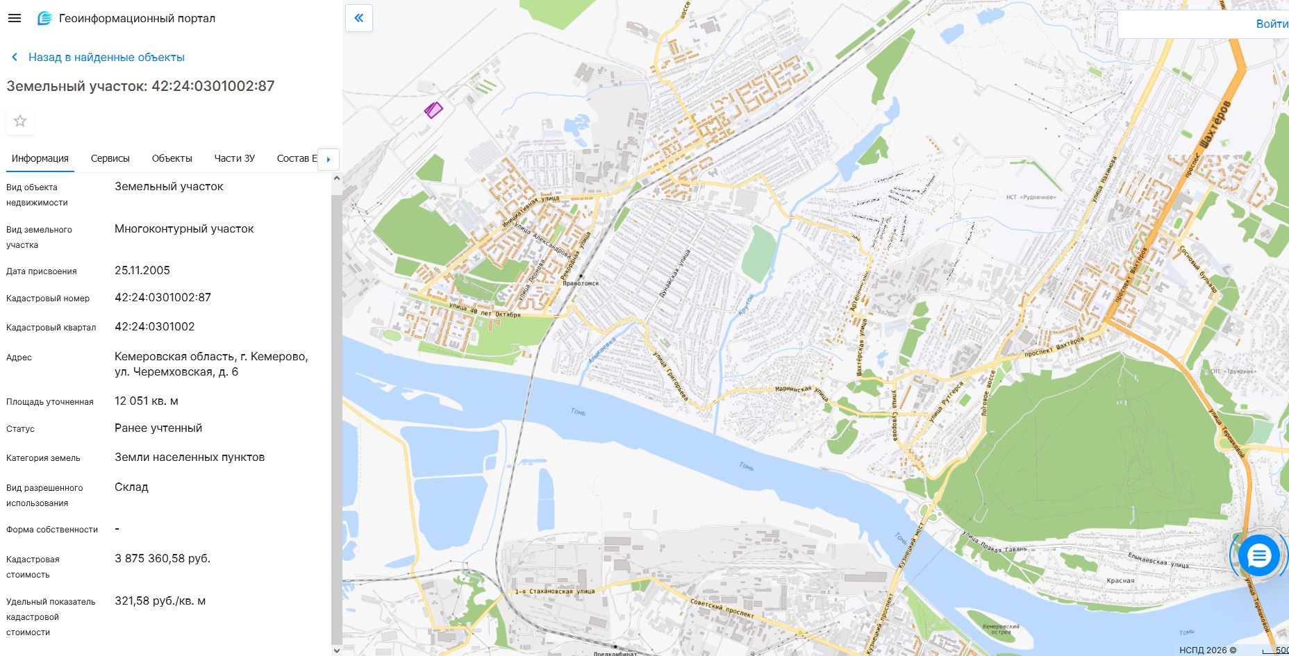 Земельный участок, пл.12051 кв.м, кадастровый №42:24:0301002:87, разрешенное использование: склад. Срок аренды 128 месяцев