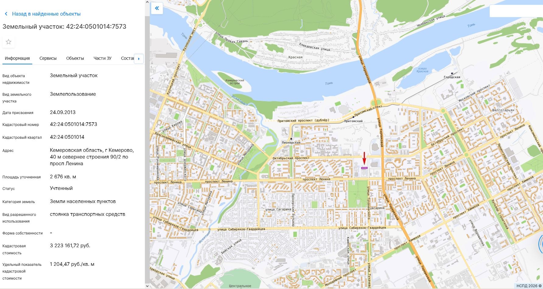 Адрес: г.Кемерово, 40 м севернее строения 90/2 по просп.Ленина