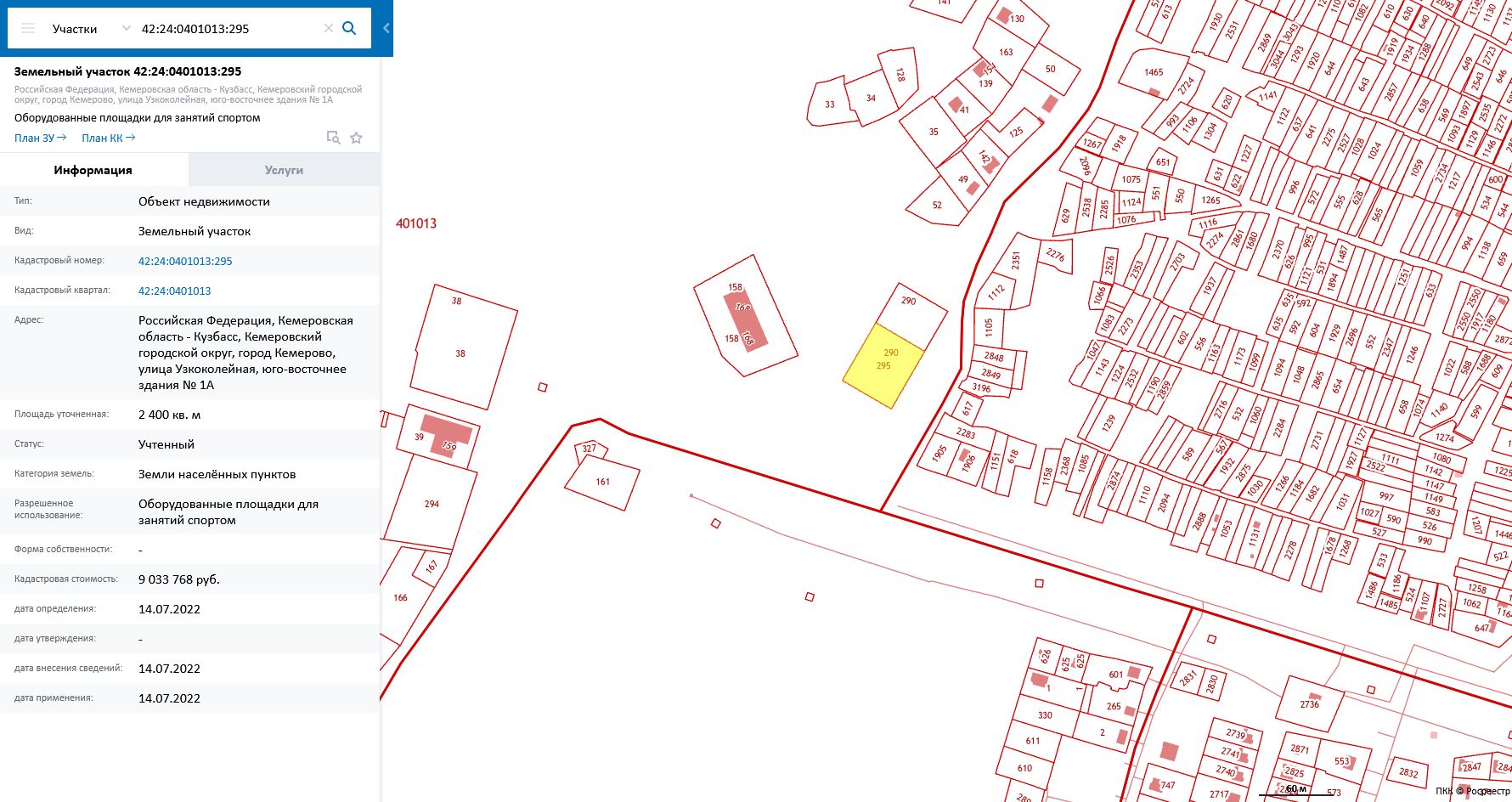 Земельный участок, пл.2400 кв.м, кадастровый №42:24:0401013:295, разрешенное использование: оборудованные площадки для занятий спортом. Срок аренды 88 месяцев