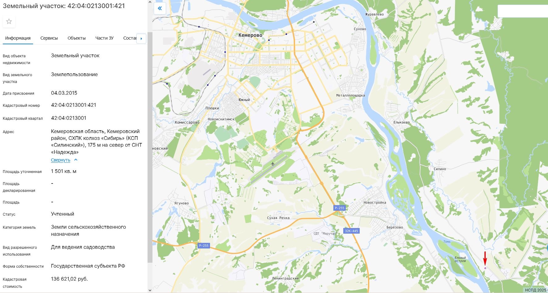 Адрес: Кемеровская область, Кемеровский район, СХПК колхоз «Сибирь» (КСП «Силинский»), 175 м на север от СНТ «Надежда»