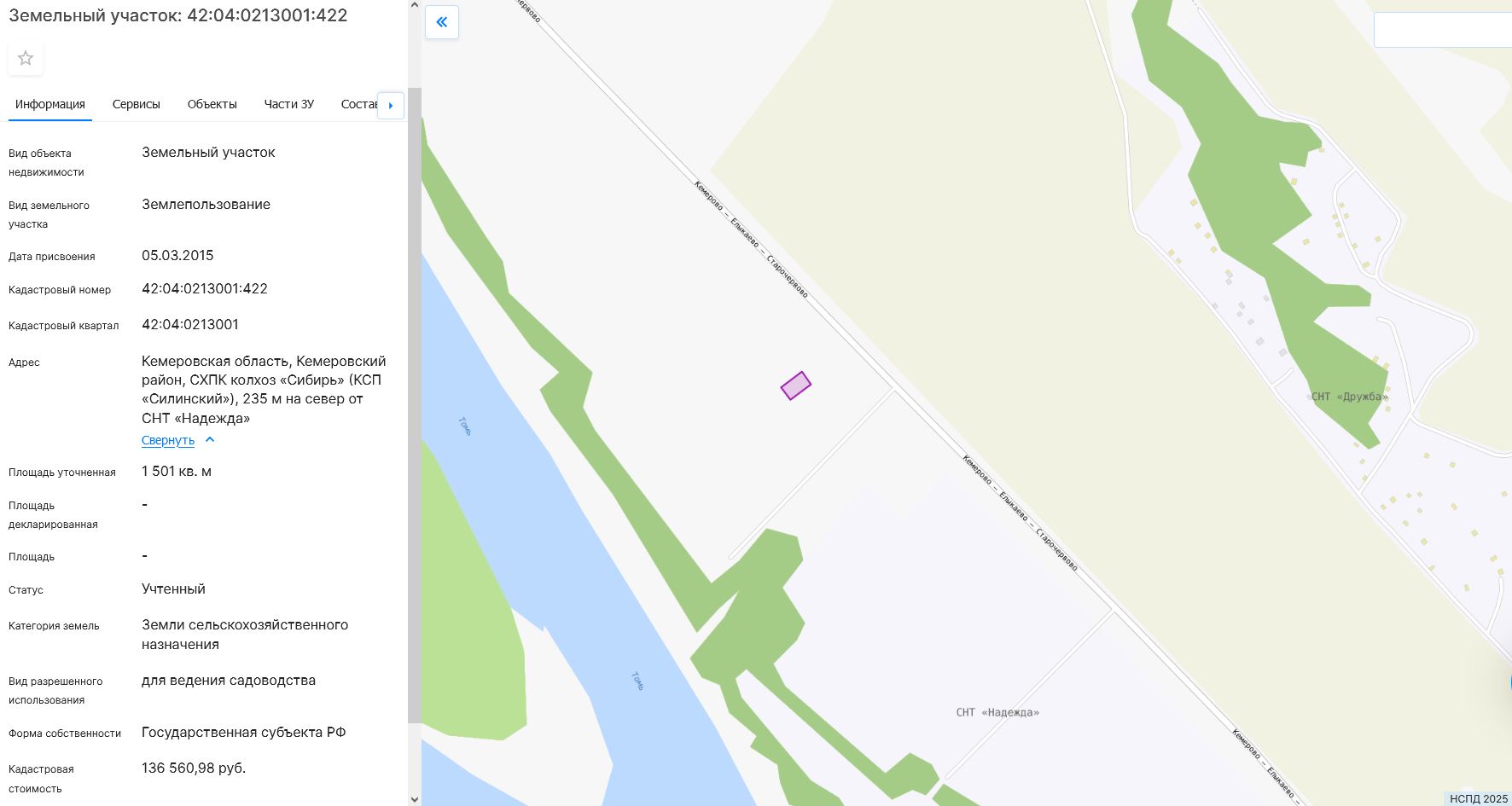 Адрес: Кемеровская область, Кемеровский район, СХПК колхоз «Сибирь» (КСП «Силинский»), 235 м на север от СНТ «Надежда»